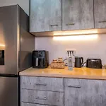 它还配烤面包机 和烤箱,让客人自己做饭更方便省心。 公共汽车站在旁边,仅有100米。 在露台上可看见花园景致。